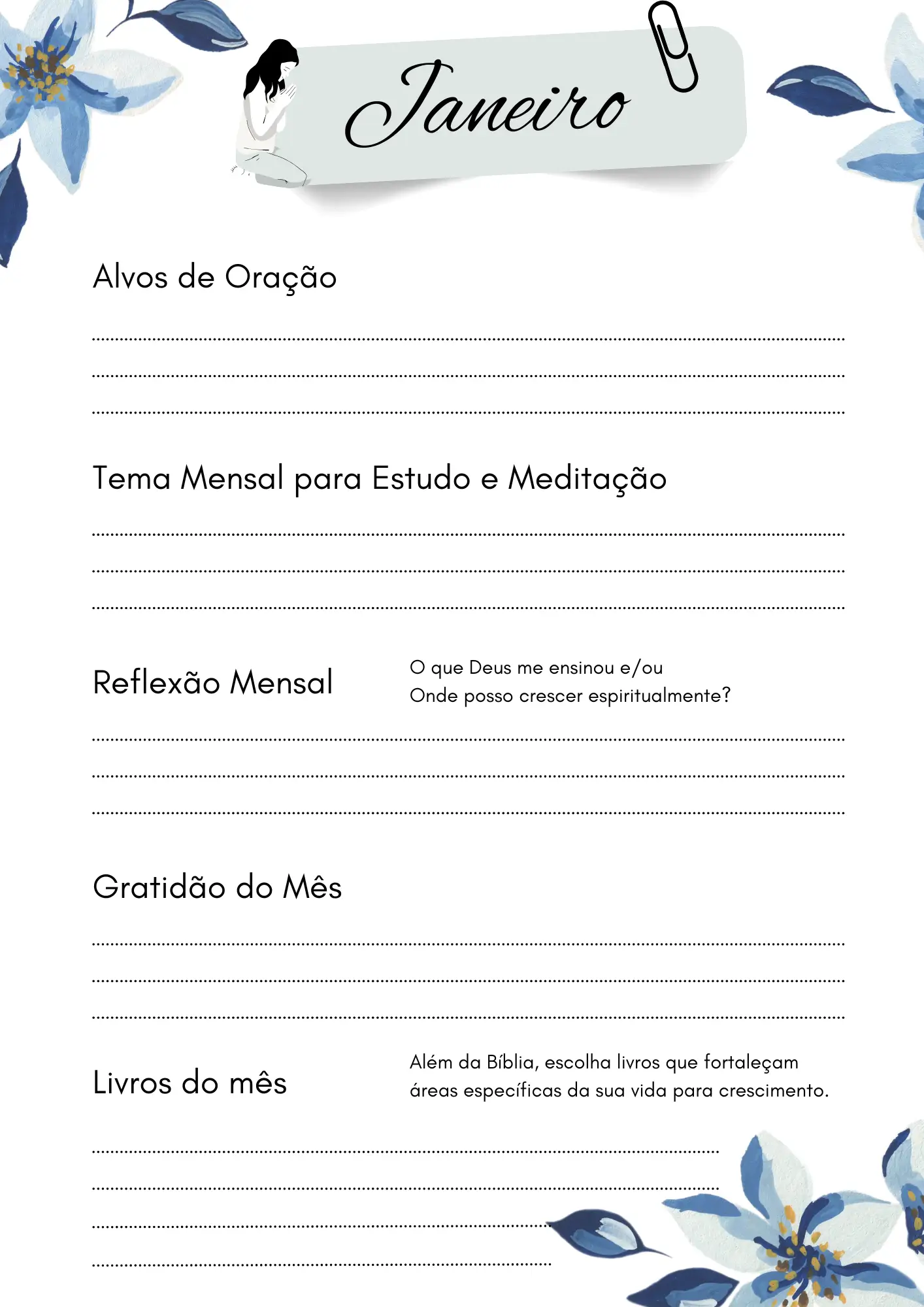 Com um layout planejado, você pode acompanhar sua rotina devocional, metas e leituras bíblicas de forma prática e estruturada.