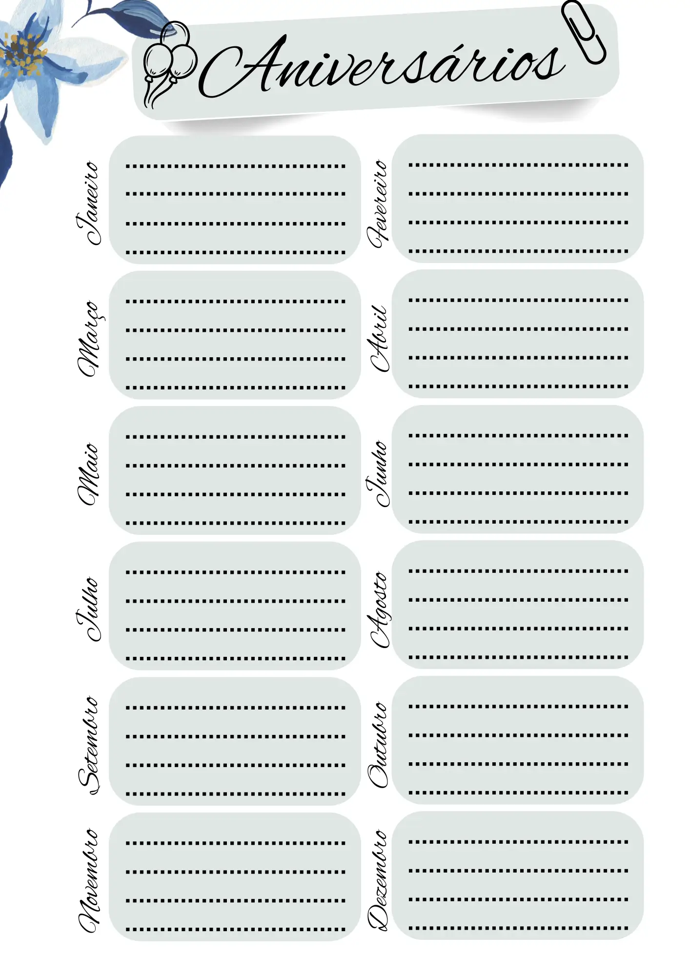 Com espaços exclusivos, você pode registrar compromissos importantes e mantê-los alinhados com sua vida espiritual.